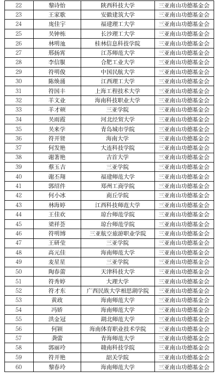 2025年海南希望工程圆梦行动第六批拟资助大学生名单公示